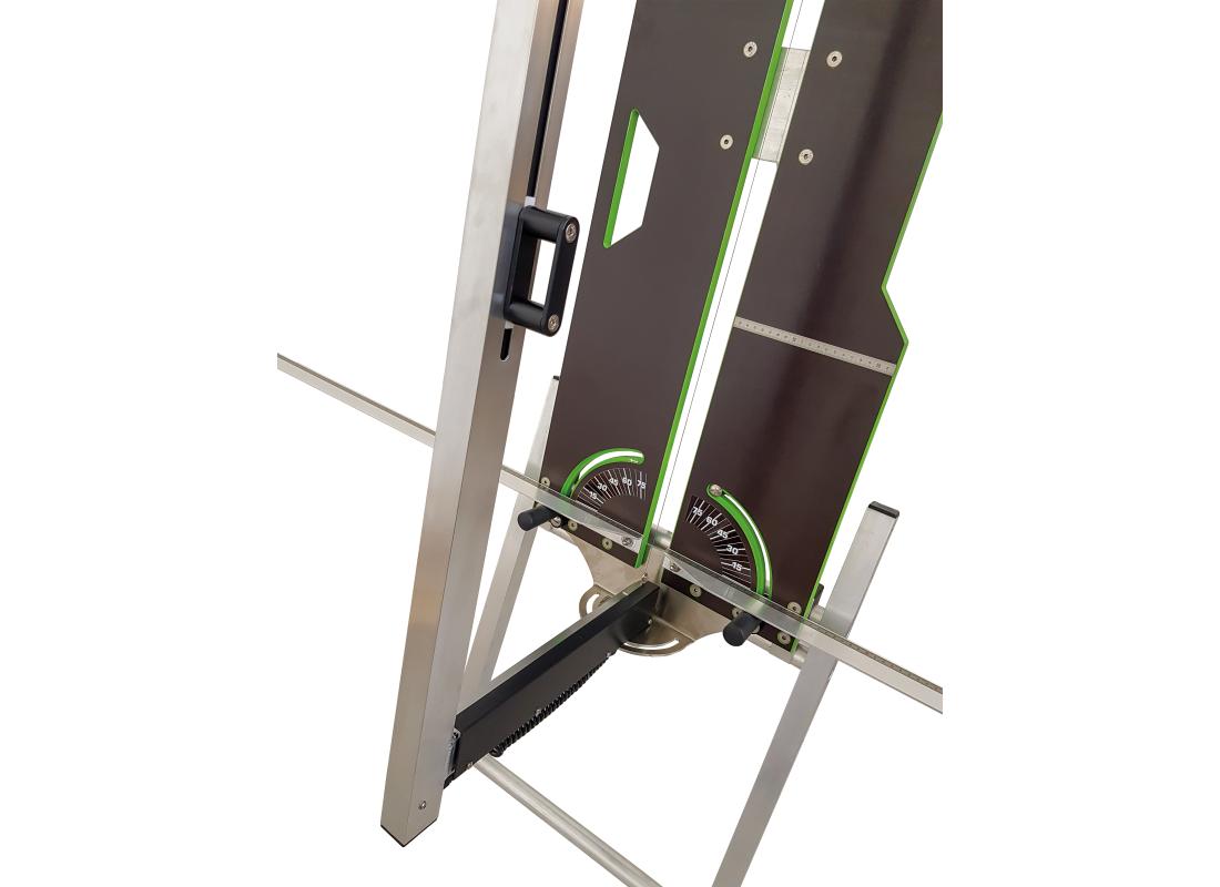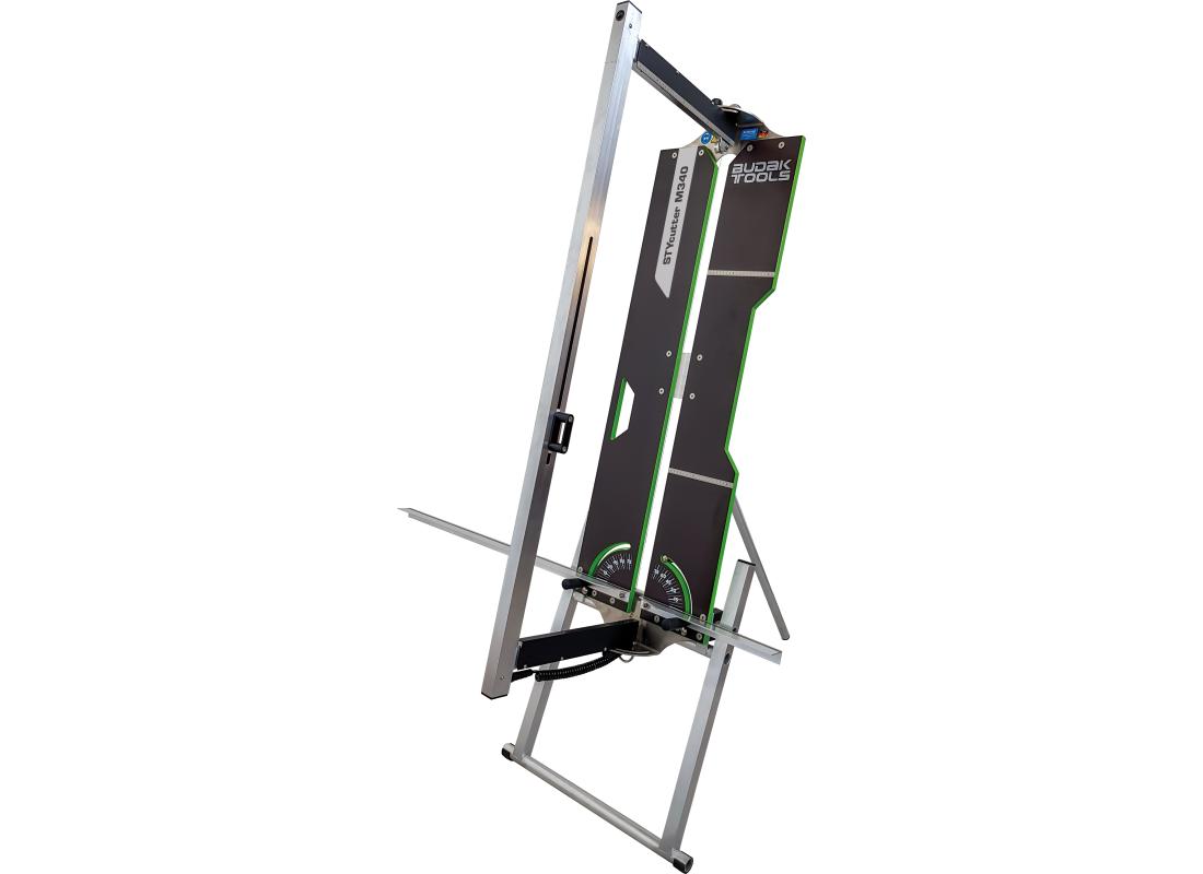 Bei der STYcutter M340X wird nicht – wie gewohnt – der Schneidbügel um die zu schneidende Dämmstärke ausgezogen. Der Schneidedraht verfährt stufenlos im schwenkbar an der Maschine verbauten Bügel und gewährleistet so ein platzsparendes Arbeiten auf dem Gerüst.